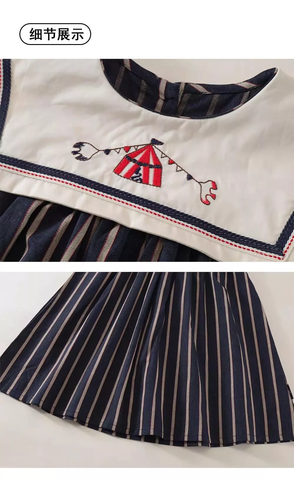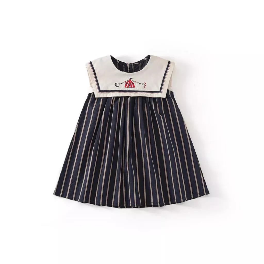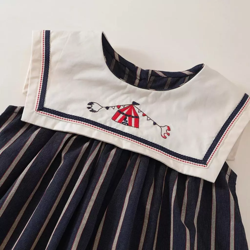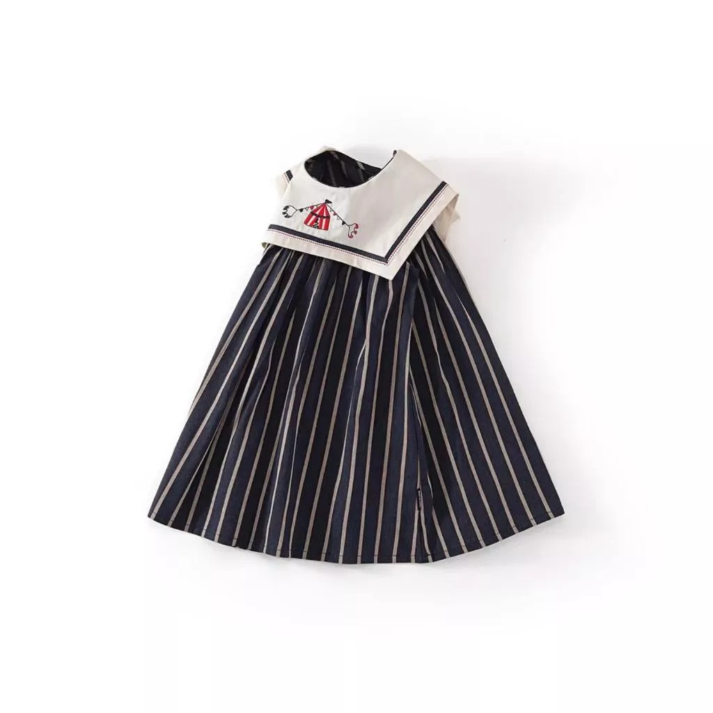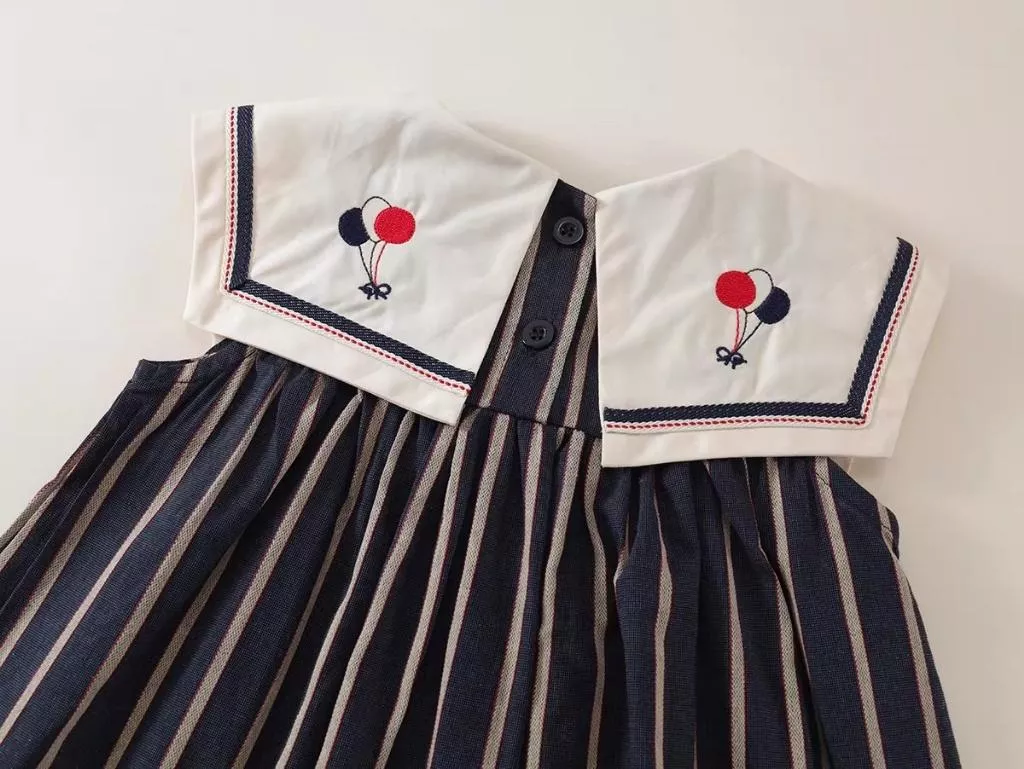條紋海軍領刺繡背心裙